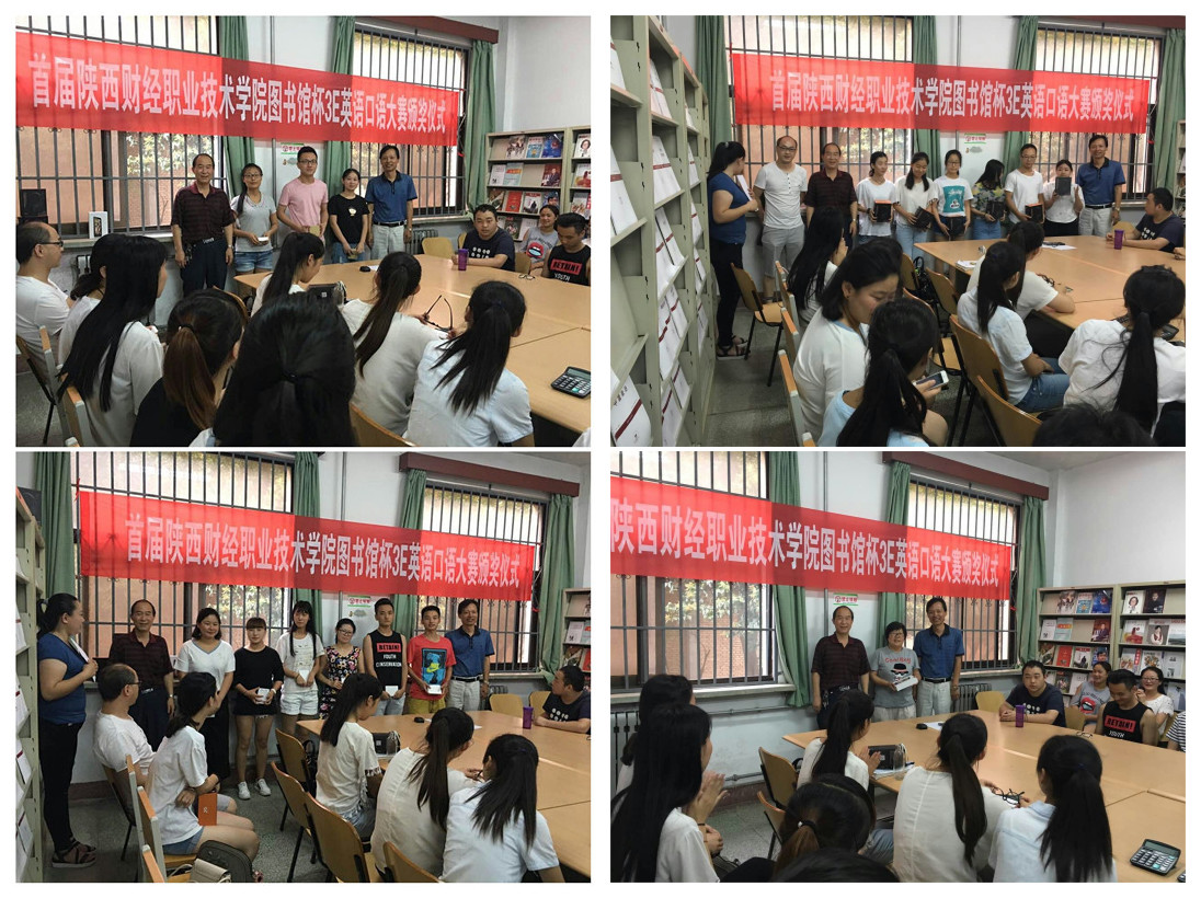 陕财职院3E英语口语大赛颁奖仪式于6月28日下午5点10分在图书馆人大资料阅览室举行,基础部主任张拓、图书馆副馆长崔斗、北京策腾教育科技有限公司西安3E英语项目经理贾素娟以及获奖师生和部分英语爱好者50余人参加了颁奖仪式,颁奖仪式由崔斗主持。