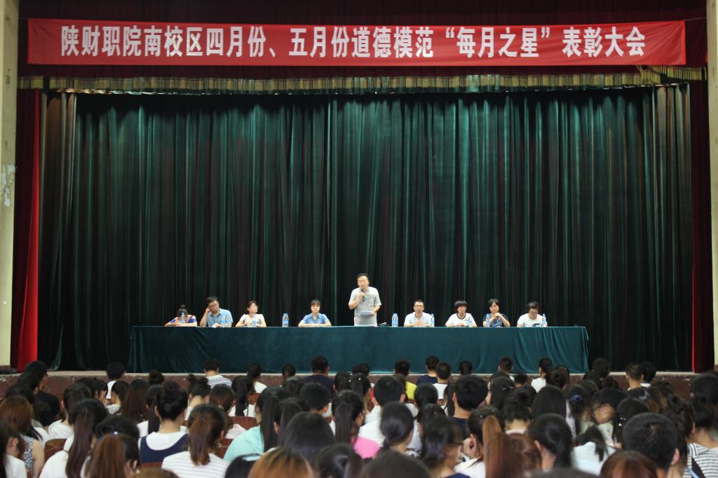 2016年6月21日下午,我院南校区四月份、五月份道德模范“每月之星”表彰大会在南校区大礼堂隆重举行。南校区负责人张朴和2015级全体辅导员参加了表彰大会,程军峰主持表彰大会。
