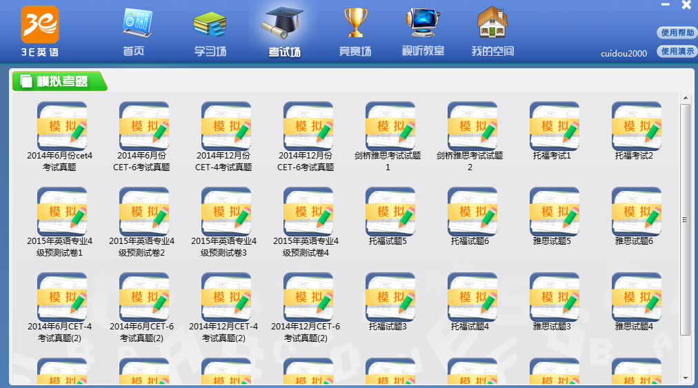 ◆ 【考试通关】包含大学四级、大学六级、考研英语、TOEFL、雅思、BEC等考试通关所需要掌握的听力、口语、词汇、情景会话等十余套课程,课程内容以模拟、训练为主,课程资源量3000余课,约60000余句口语会话,课程资源基本涵盖了学生口语考试的所有科目与内容,是每一位学生参加口语考试的必学课程。