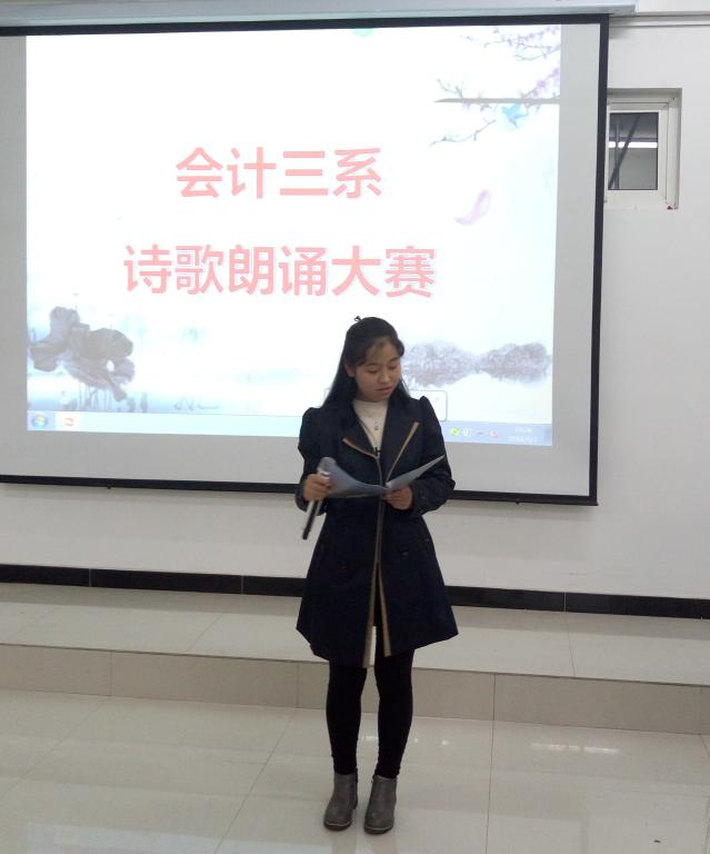 为弘扬学生的爱国主义精神,充分展现新时期广大青少年良好道德素质和精神风貌,丰富同学们的校园文化生活,并为第二届大学生校园文化艺术节诗文朗诵比赛做好准备。4月7日晚7:00,由会计三系学生会主办的“爱我中华”经典诗文朗诵选拔赛在综合楼514举行,会计三系主任邓迪夫及全体辅导员出席了比赛并担任评委。
