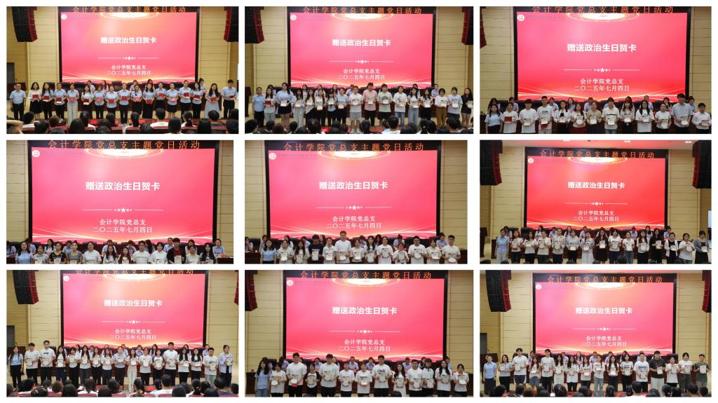 活动尾声,全体参会人员在教学楼前合影留念。随后,各党支部分别组织召开专题座谈会,党员同志们围绕“政治生日愿望”敞开心扉、深入交流,将对党的深情祝福切实转化为干事创业的具体行动承诺。此次政治生日活动以政治仪式为载体,有机融合组织生活的政治性、庄重性与教育性,既是一次深刻的党性教育与政治淬炼,更是凝聚奋进共识、赋能事业发展的再动员。会计学院党总支将持续深化 “党员政治生日”党建品牌建设,以规范化仪式强化身份认同,以精准化关怀激发使命担当,教育引导全体师生党员始终牢记“第一身份”,以“永远在路上”的政治自觉,推动学院事业高质量发展。